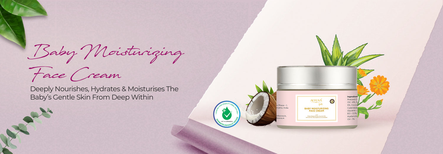 Right from birth, little babies are exposed to various skin irritants which can have adverse effect on their health and delicate skin. Alyuva Baby Moisturizing Cream is formulated with natural plant based and hypoallergenic ingredients to protect and nourish baby’s soft and sensitive skin. ALYUVA Baby Moisturizing Face Cream is formulated with 100 times washed Indian Cow’s clarified butter (Shata Dhauta Ghrita) which deeply penetrates through all seven layers of skin to nourish it from within. Coconut oil is antibacterial, antifungal and anti-inflammatory, contains powerful agents to protect skin from potential pathogens. Almond oil is a natural moisturizer and a source of Vitamin E and Vitamin D. It also has anti-inflammatory properties and helps in healing damaged and dry skin. Wheat Germ oil protects and moisturizes the skin, makes it softer and more supple, and helps prevent the skin from becoming dry, flaky and inflamed. Shea Butter is antifungal, anti-inflammatory, helps soothe even the most sensitive skins and creates a protective barrier on your baby’s skin. Chamomile has soothing and anti-inflammatory properties, Lavender Oil has calming properties which help to relax a fussy baby and encourage sleep. Alyuva Baby Moisturizing Face Cream should be used daily after bath to make baby’s skin smooth, bright and healthy.