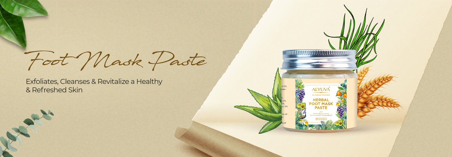 ALYUVA Herbal Foot Mask Paste is made with Multani Mitti (Fuller’s Earth) which revitalizes the skin by exfoliating, removing dead skin cells, toxins and impurities from the skin. Multani Mitti has been supplemented with powerful Ayurvedic ingredients like Turmeric, Sandalwood, Orange Peel Powder, Neem powder and Licorice Powder and mixed with Avocado Oil, Lemon Oil, Grape Seed Oil, Aloe Vera Gel, Veg. Glycerin and Carrot Seeds Extract to make it a multipurpose pack for feet relaxation and rejuvenation. The foot mask exfoliates, moisturizes, hydrates, nourishes, refreshes and repairs the skin by increasing blood circulation to the feet.